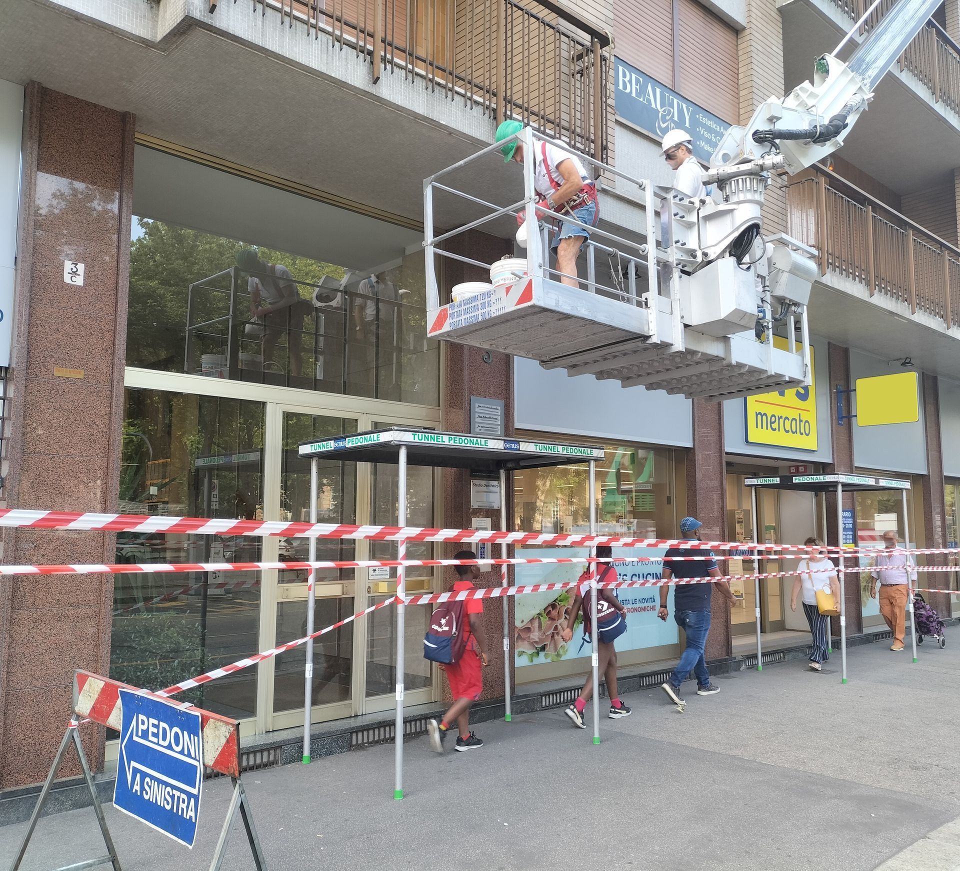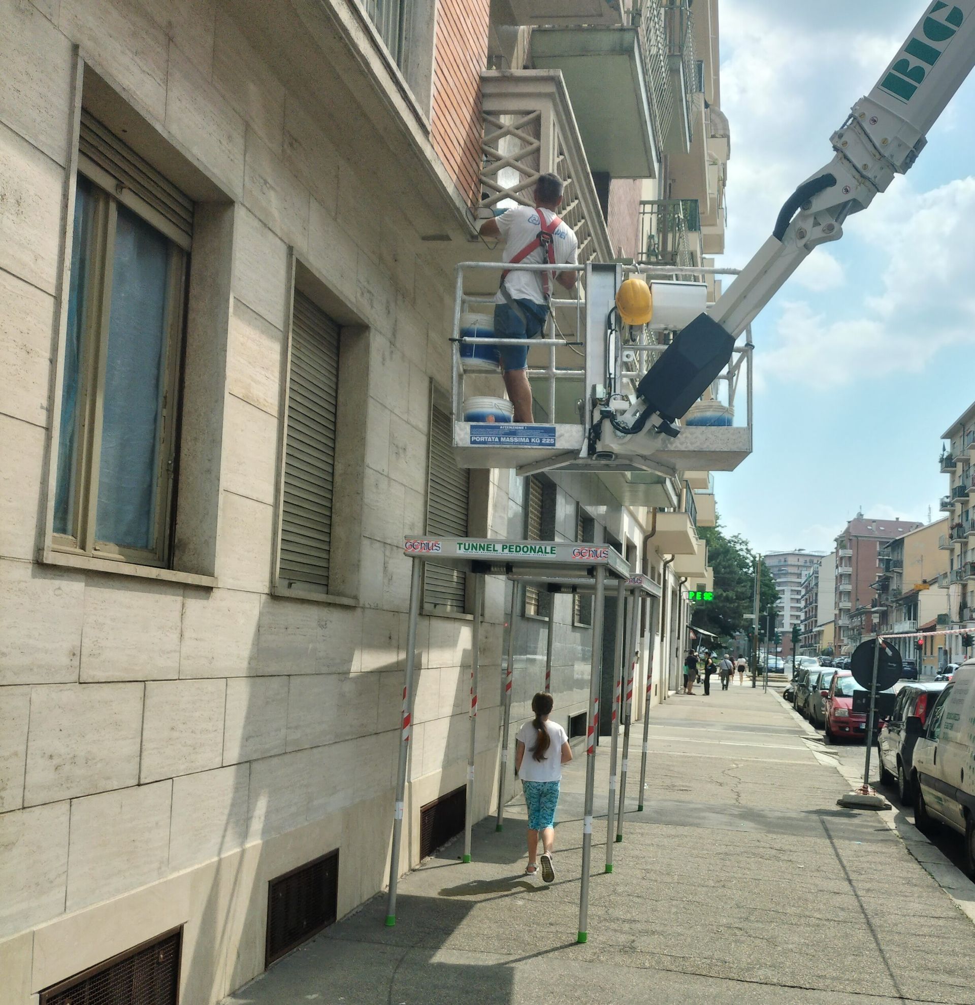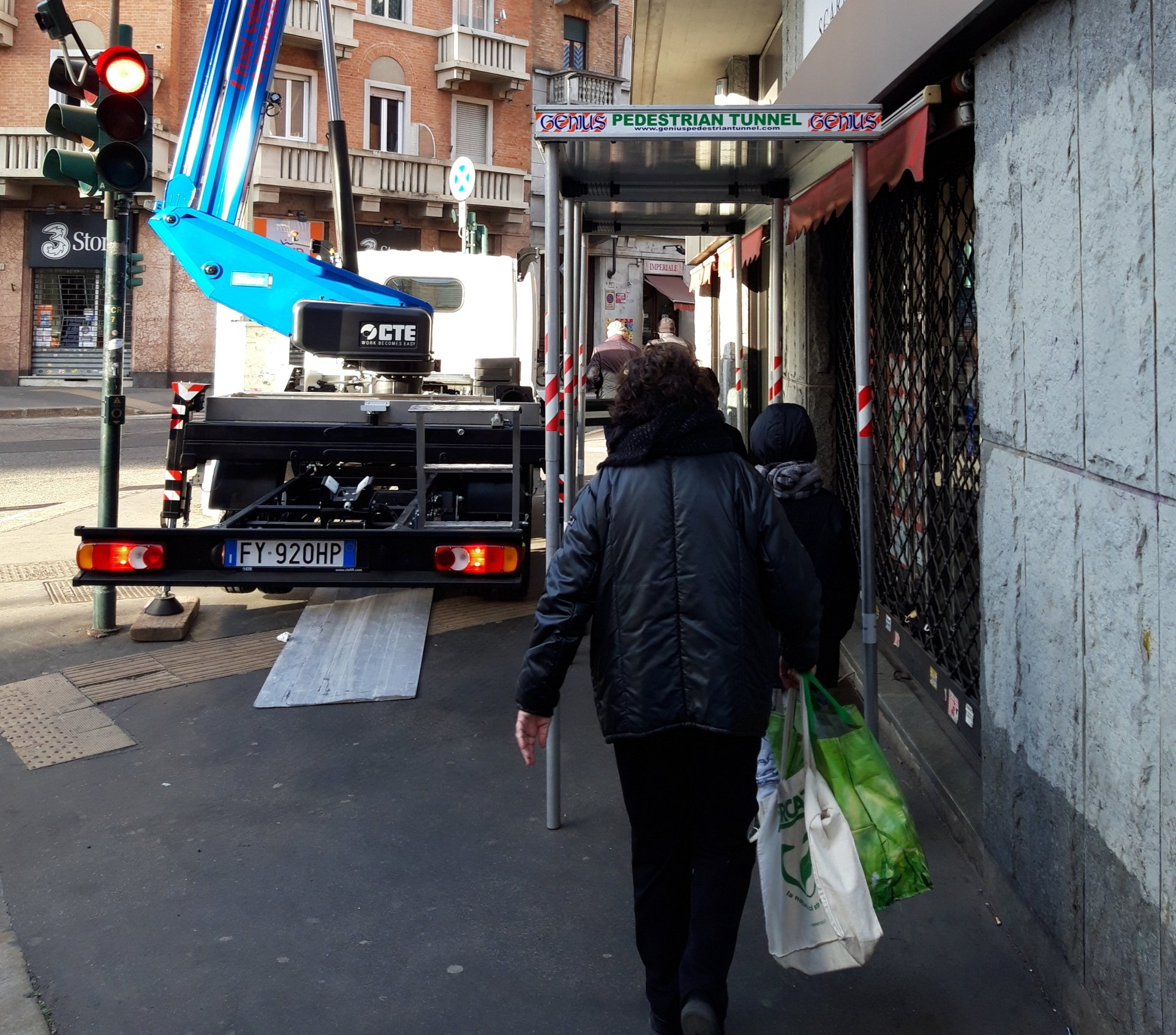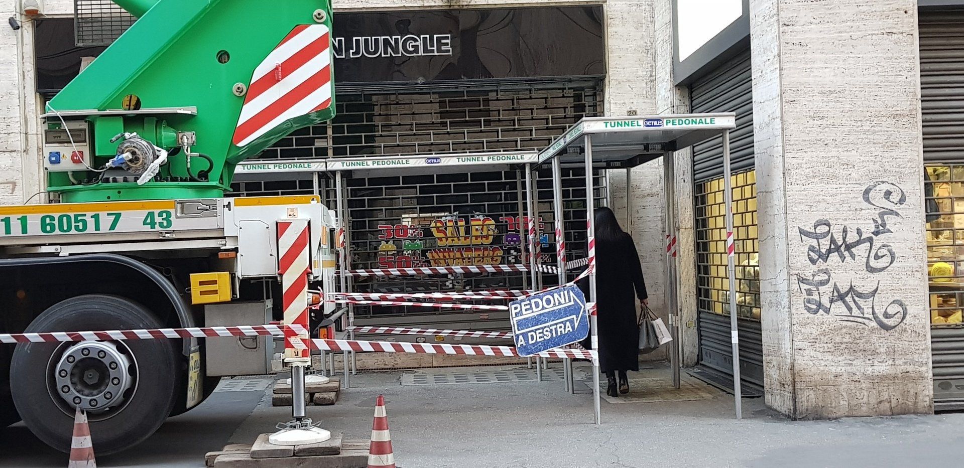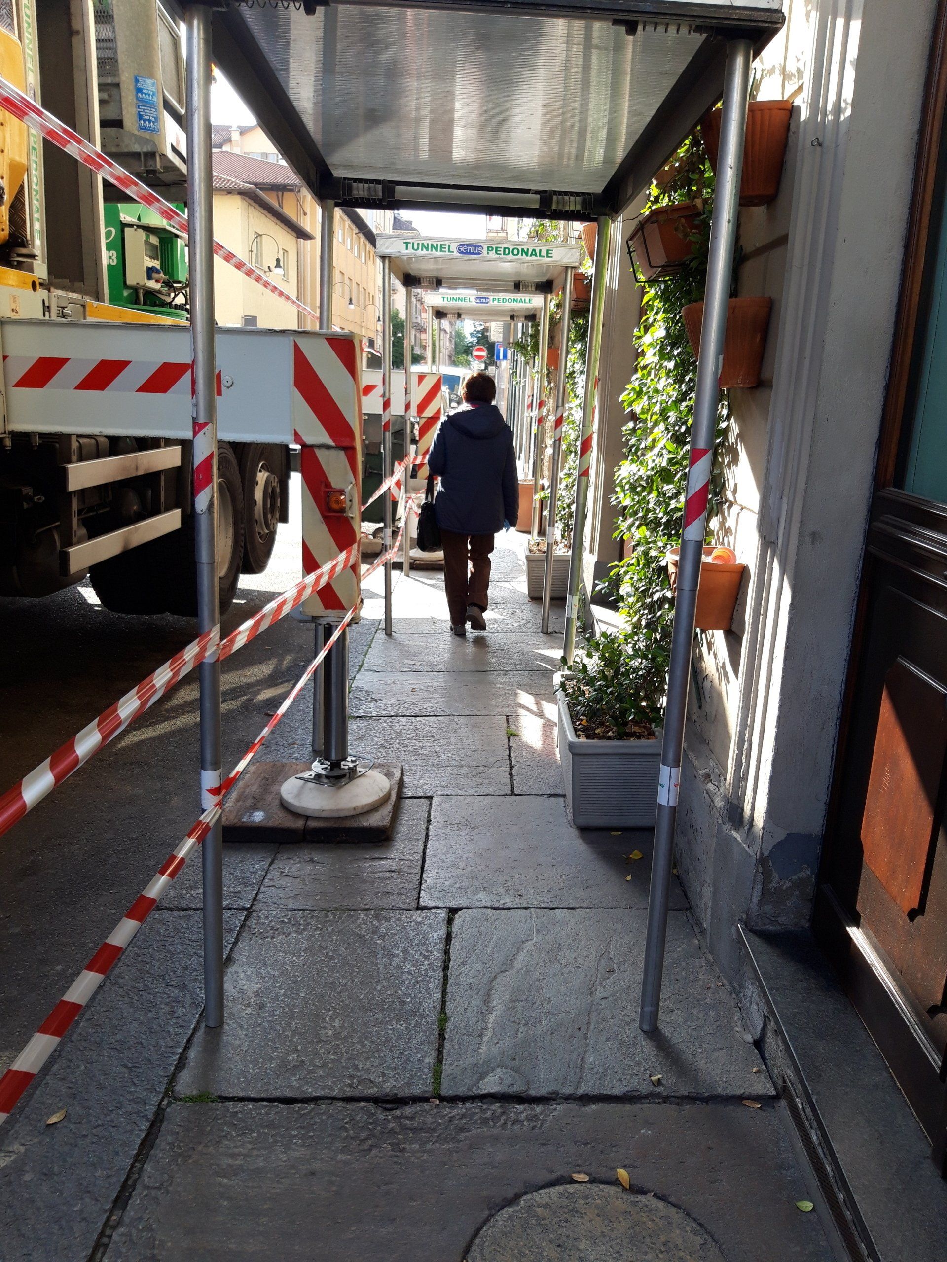 Fino a qualche tempo fa la protezione dei pedoni in caso di cadute accidentali dall'alto di materiale vario durante l'esecuzione di lavorazioni eseguite in quota era affidata a soluzioni complesse e dispendiose. Molte volte risultava purtroppo necessario perfino chiudere i marciapiedi e tale procedura causava notevoli disagi ai negozianti e ai pedoni stessi costretti ad attraversare la strada in punti non regolati da strisce pedonali. Oggi grazie al Tunnel pedonale Genius tutto è molto più semplice, sicuro e veloce !